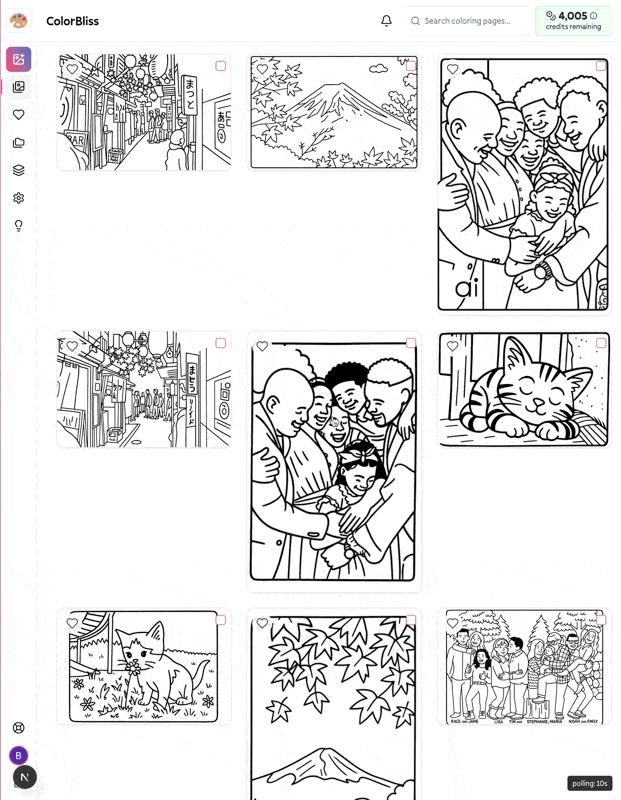 Favorites let you bookmark specific coloring pages for quick access later. Whether you're saving pages for a project, collecting your best work, or marking pages you want to print, favorites keep everything organized in one place.